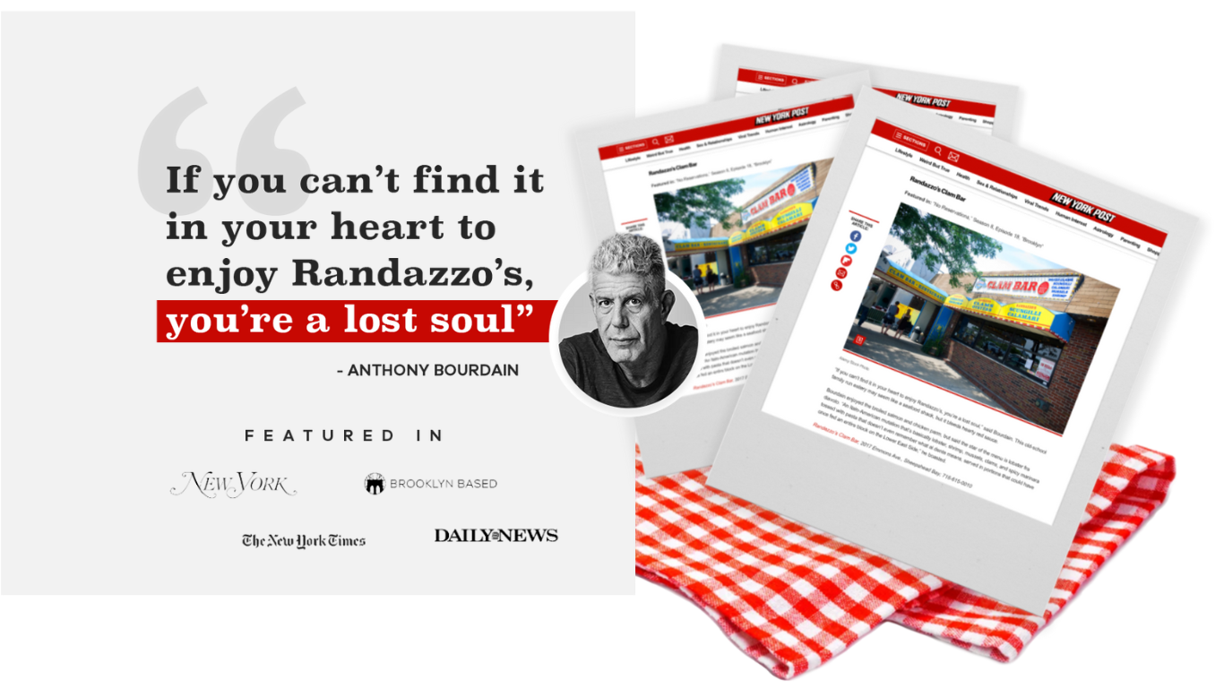 Our family's history in the seafood business dates back over a century. Our great Grandfather Sam Randazzo started the family business in the lower east side of Manhattan in 1920. In 1932, Sam moved the business to Sheepshead Bay, Brooklyn which at the time was a bustling fishing community. In 1959, Sam's daughter Helen opened the now globally renowned Randazzo's Clam Bar on Emmons Avenue, and the famous red sauce was born.